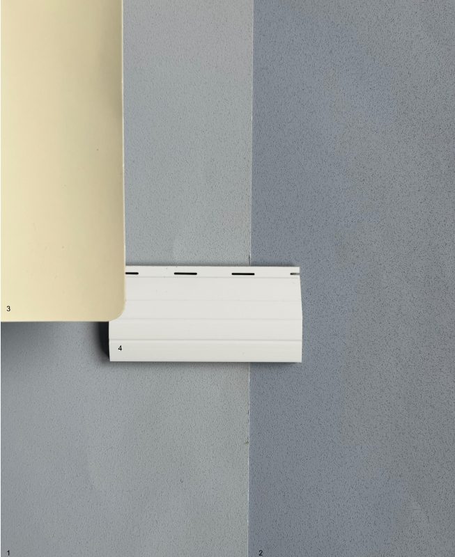 Die Fassade ist als Wärmedämmverbundsystem ausgebildet und das Gebäude erreicht insgesamt den EH 40 Standard. Die Differenzierung der blauen Fassaden wird durch unterschiedliche Körnungen im Putz erzeugt. Das Satteldach erhält eine Deckung aus roten Ziegeln. Alle anderen Elemente, wie Balkone, Brüstungen, Absturzsicherungen und Fensterprofile sind cremeweiß gehalten. Durch diese besondere Farbgestaltung fügt sich das Ensemble harmonisch in die heterogene Umgebung ein und setzt einen ansprechenden Akzent im Stadtgebiet.